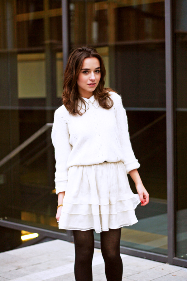 bardzo podobają mi się zestawienia oversize'owych swetrów z delikatnymi spódniczkami. plus jeszcze ten kołnierzyk - świetnie!