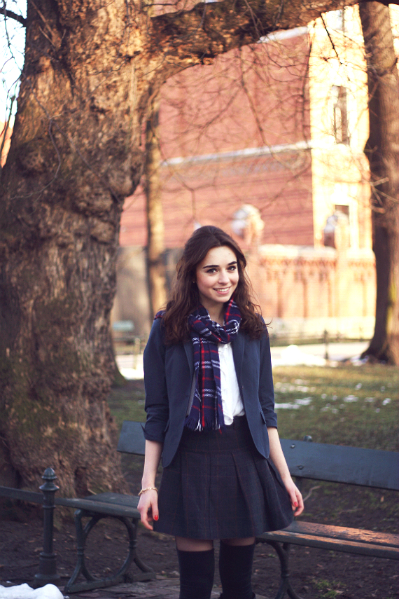 (ph. Basia Zielińska / wearing second-hand blouse, skirt made by my grandma, Uniqlo blazer, second-hand scarf, SIX bracelet)